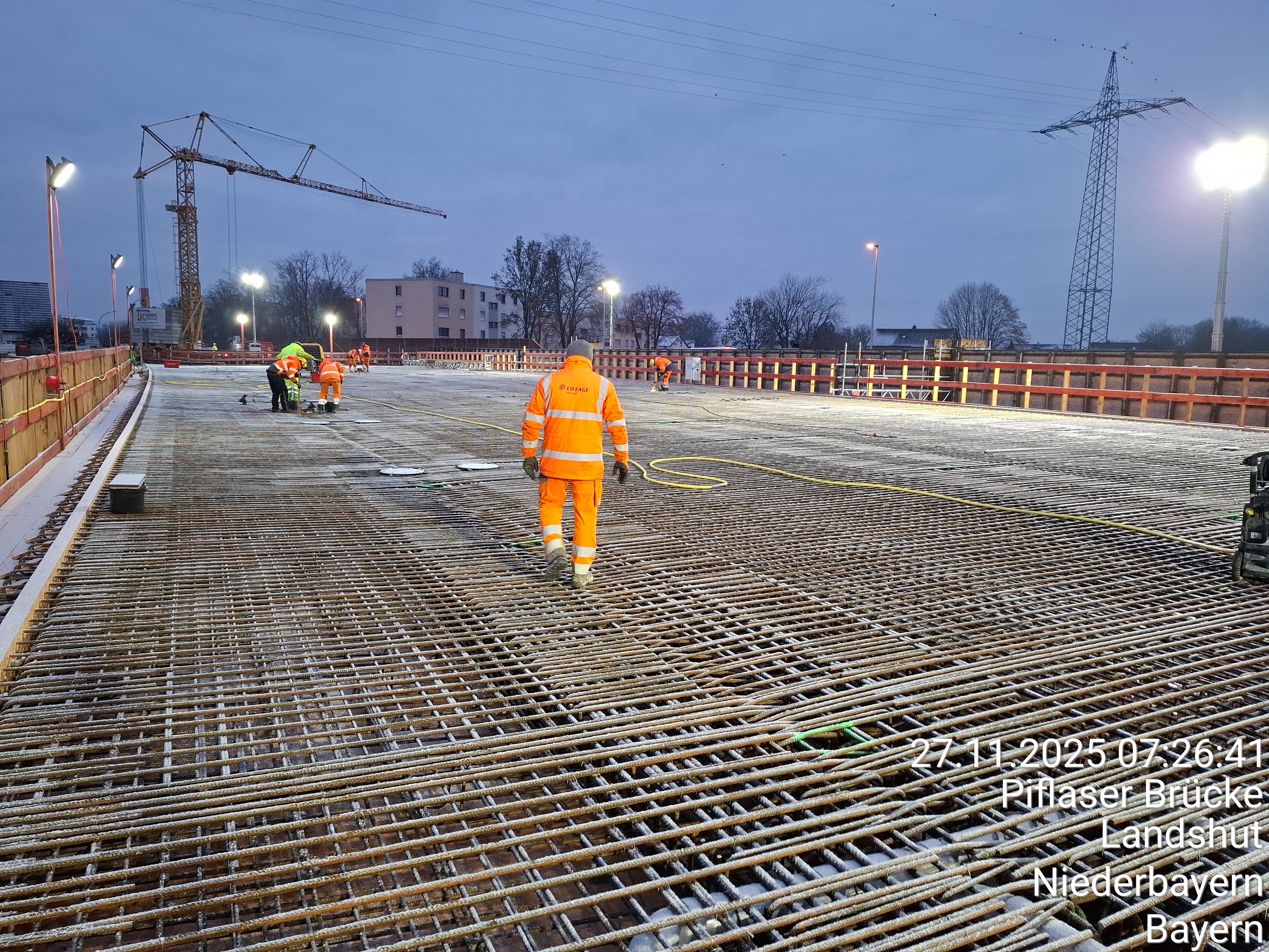 Denn nicht überall geht es so beschaulich zu wie im Bilderbuch. Während heute um 17:30 Uhr das Nürnberger Christkind mit dem feierlichen Prolog den weltberühmten Christkindlesmarkt eröffnet, herrscht an unserer Isarbrücke in Landshut Hochbetrieb. Die Betonage des mehrstegigen Überbaus steht an und das heißt: 1.150 Kubikmeter Beton in ca. 18 Stunden und somit volle Konzentration und Hochleistung für alle💪!