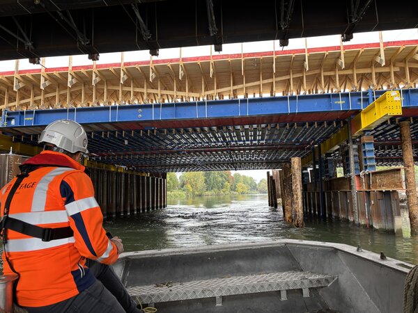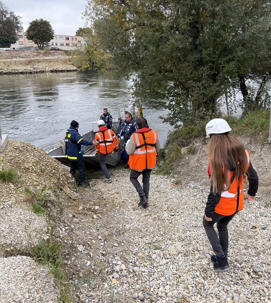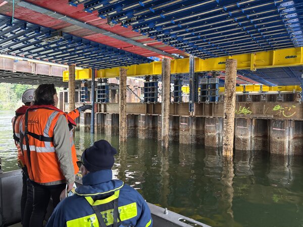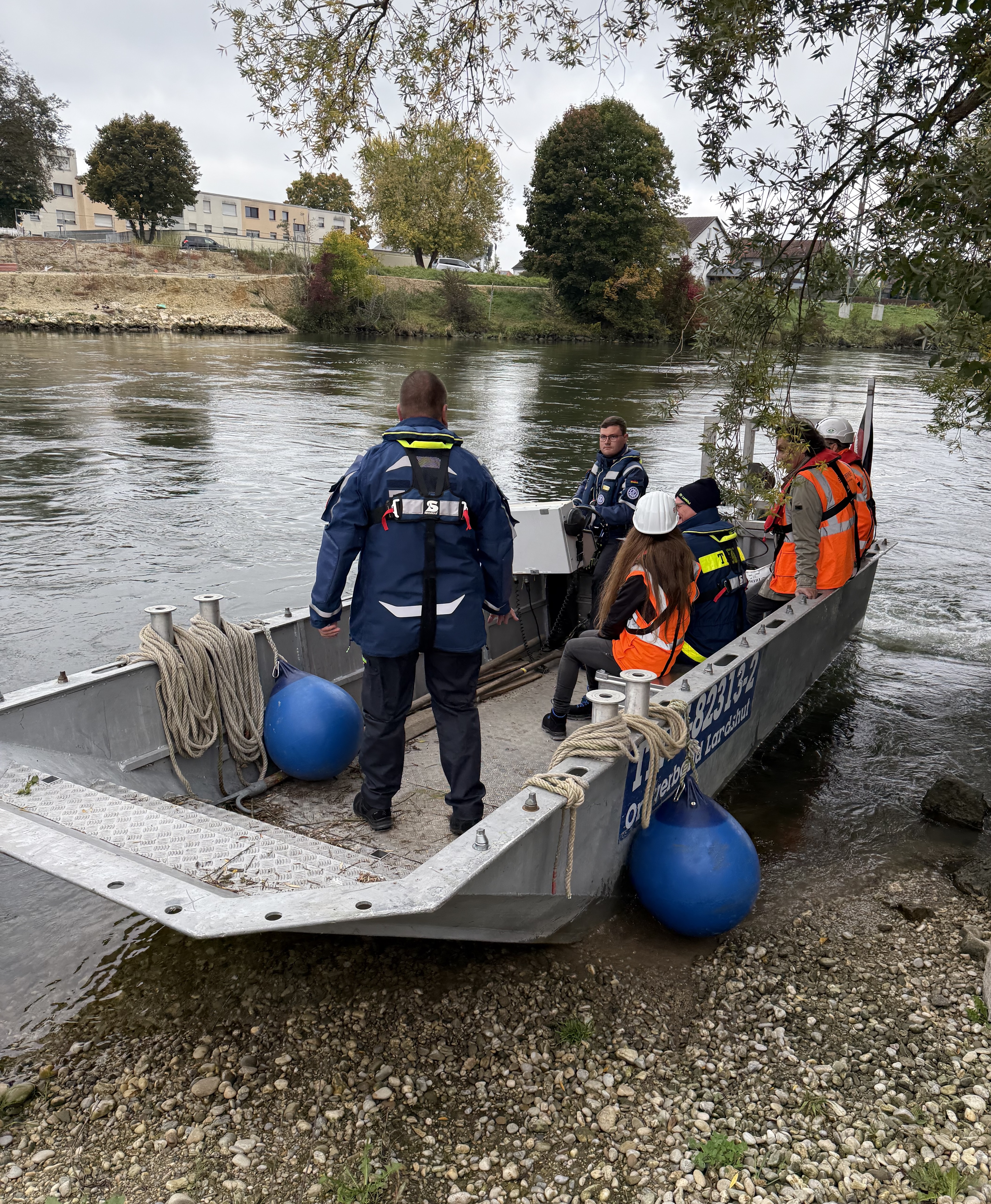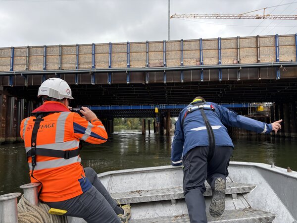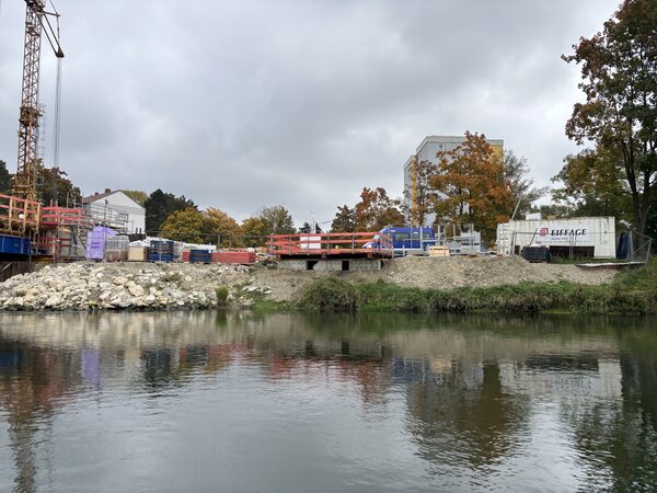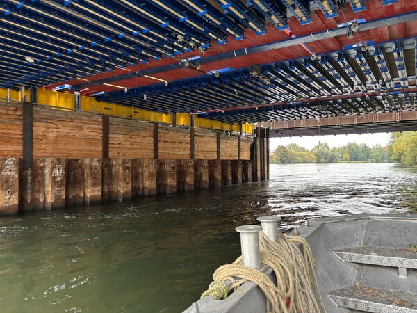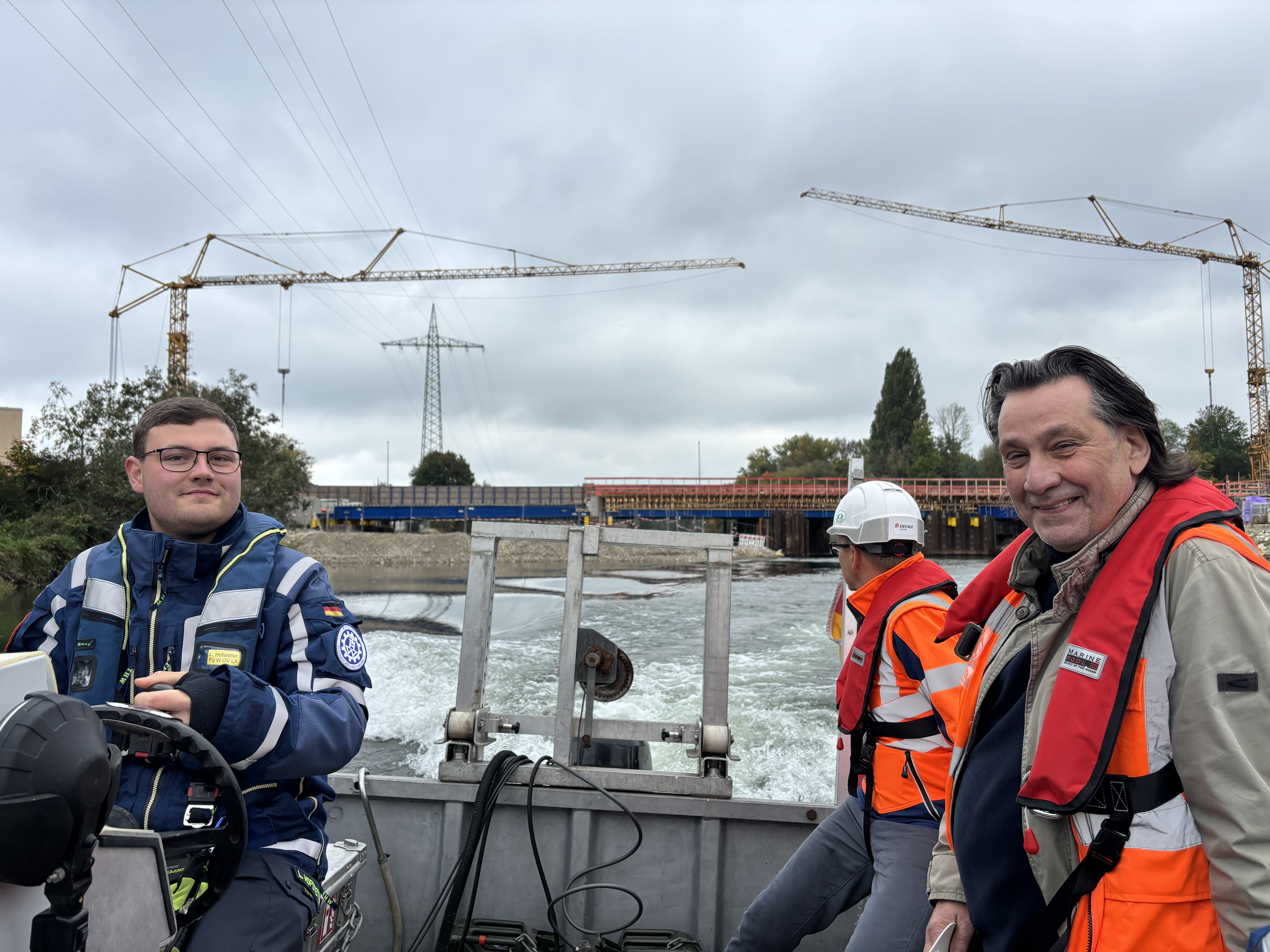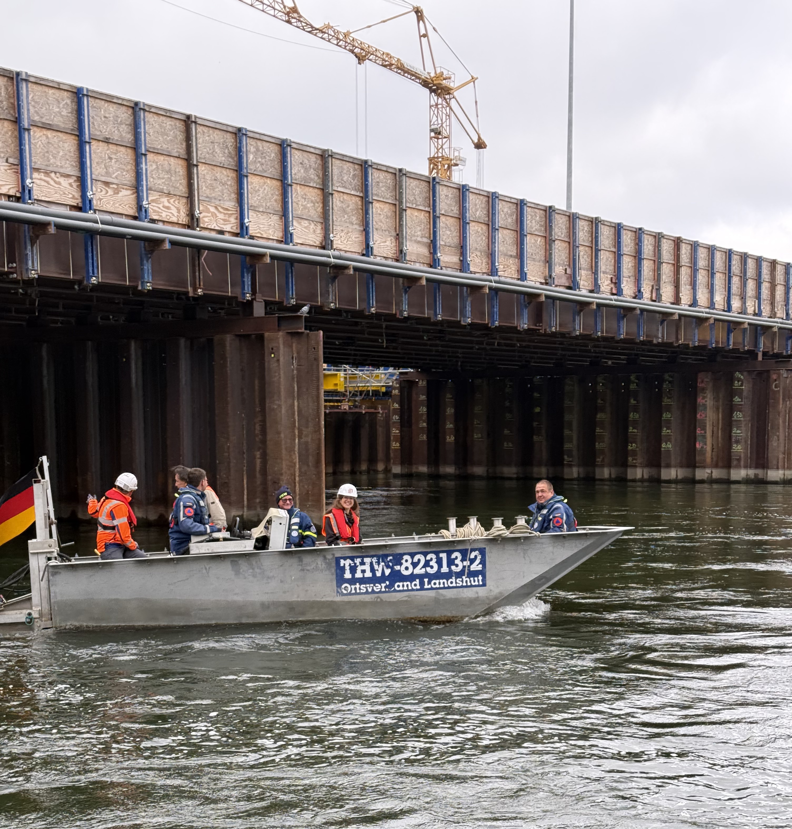 After the handover, we were able to experience a very special highlight👏 : we took the rescue boat out on the Isar, first under our bridge over the Kleine Isar, then to the bridge over the Große Isar - our next section of the overall construction project - and then across the river, accompanied by interesting stories from the THW. After our boat tour, the hot coffee in the construction site container tasted even better🥶.