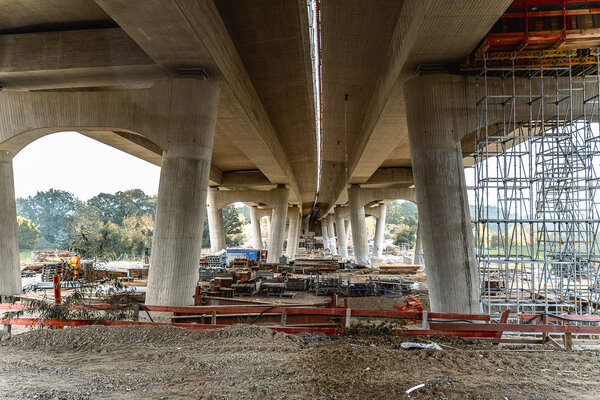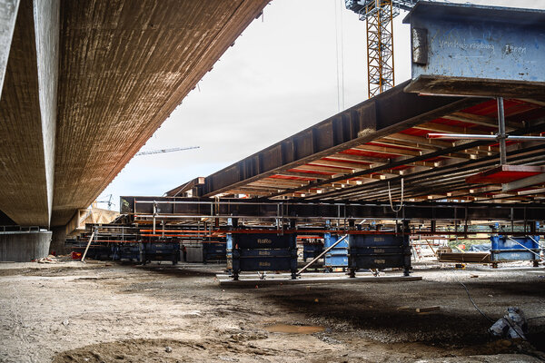 • Fast construction can be realisedwhile traffic is still moving thanks to a high degree of prefabrication - this means, for example, the use of steel girders and semi-finished parts for overpass structures, which enable fast assembly during short breaks on days with less traffic; as well as the construction of the subway structures under one-way traffic guidance.