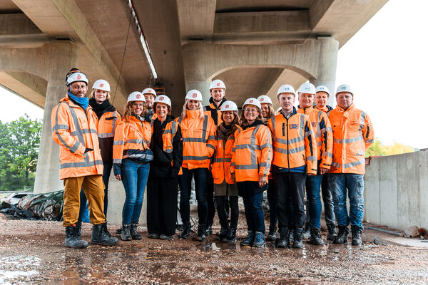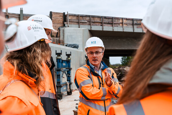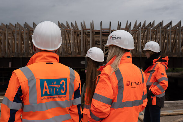 The communications group of the Eiffage Infra-Bau Group took advantage of what was perhaps the last opportunity to visit the A3 motorway expansion project and gain exclusive insights into the special features of Germany's largest infrastructure project to date . On a construction site tour, we travelled around 50 kilometres of the expansion route and stopped off at the numerous impressive bridge structures, such as the Aurach Valley Bridge or one of the green bridges. We were particularly fascinated by the dimensions of this gigantic project and the enormous construction progress that is being made here every day.