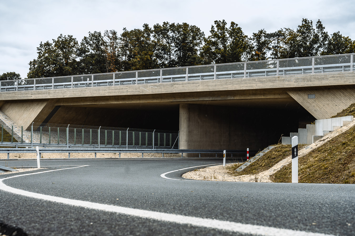 • Green bridges with gabion walls on the sides as visual and glare protection for wildlife