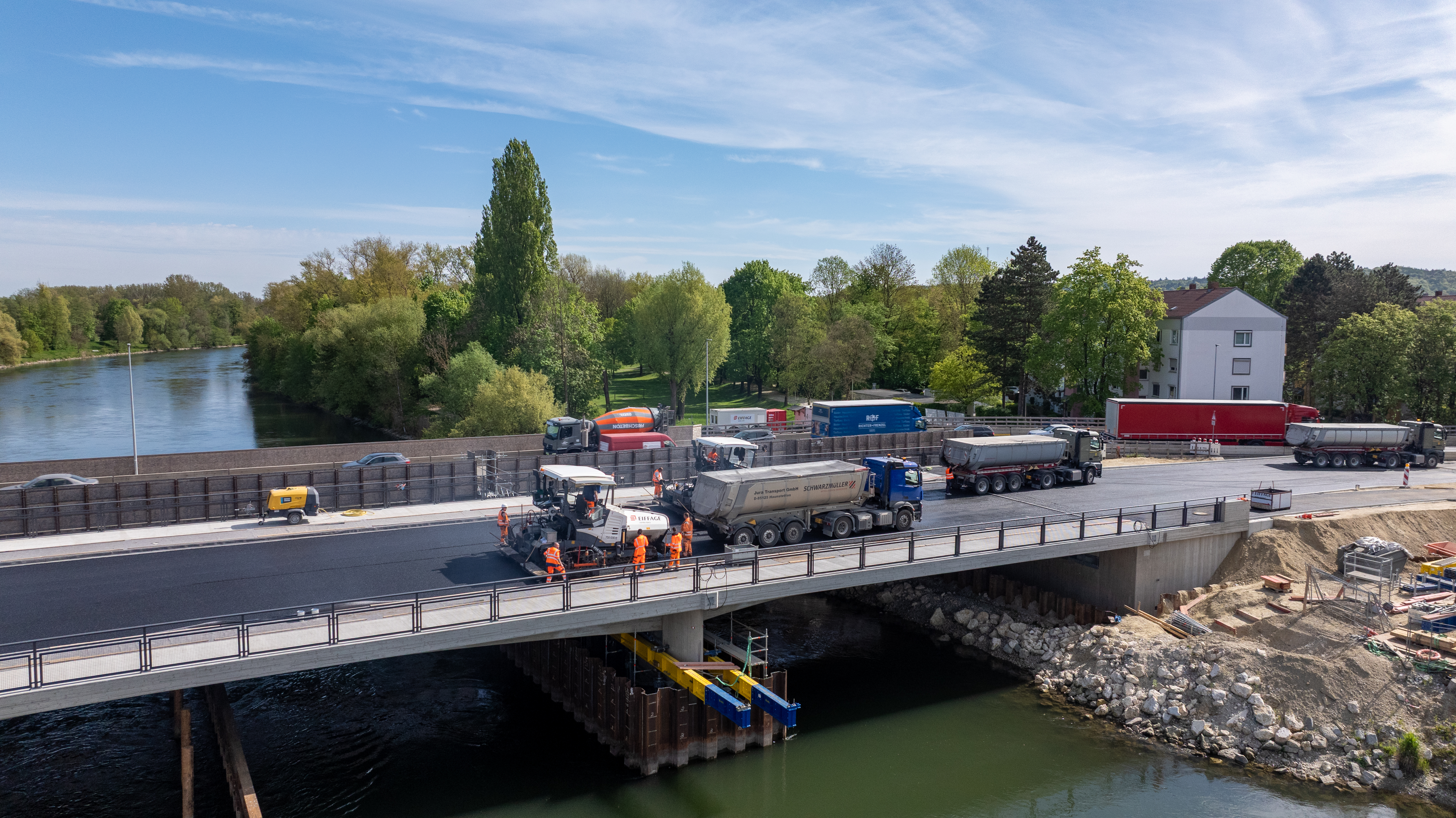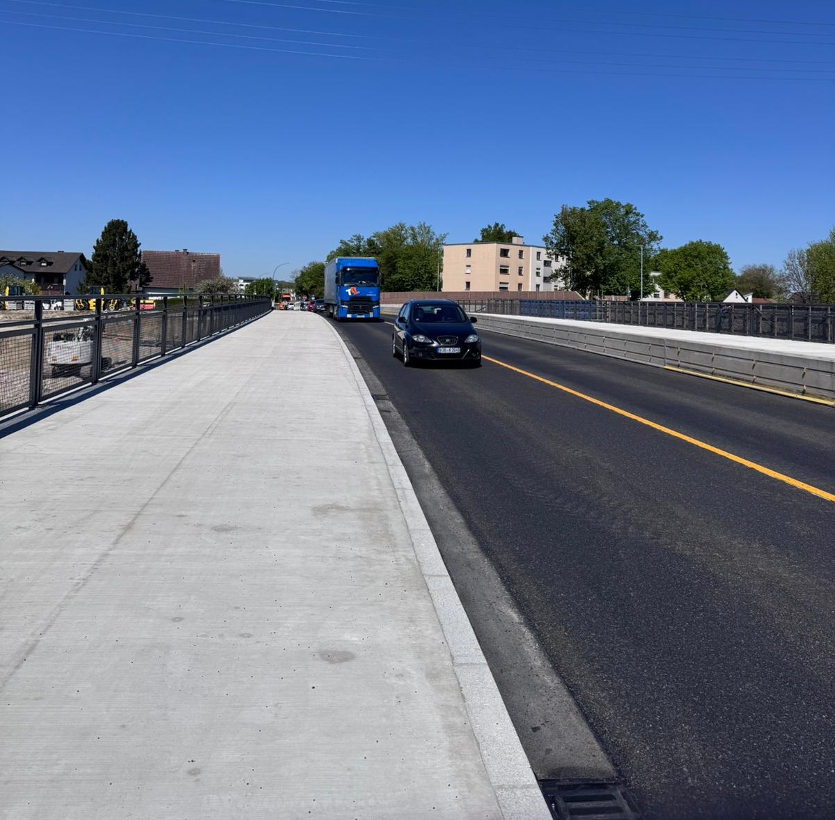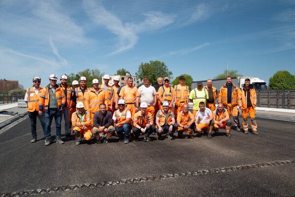 Our construction site on the Isar bridges in Landshut reports completion💪! After the successful asphalting of the superstructure on 28.04.26 by the team from our sister company Eiffage Infra-Ost, the transfer of traffic from the temporary bridge to the new Small Isar Bridge was scheduled for yesterday night from 29 to 30.04.26, which our project team mastered with flying colours👏 . The big moment arrived punctually at 5 o'clock : the first cars rolled over our magnificent bridge. With satisfaction and great pride, our project team was able to pause for a moment and savour the joint achievement.