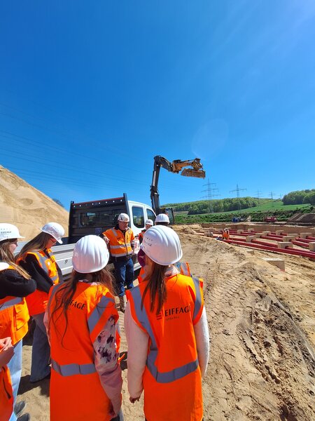 Our programme offered an exciting insight into various areas of civil engineering. The participants had the opportunity to visit our construction site of the Civil Engineering department in Lüstringen - EnLAG 16 GA3 -, try out the "hot wire" on the mini excavator, operate the rammer and vibrating plate and make their own power cable.