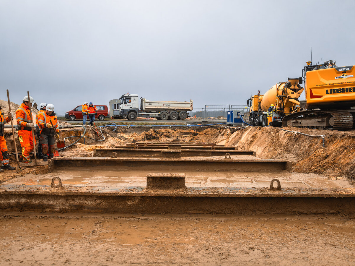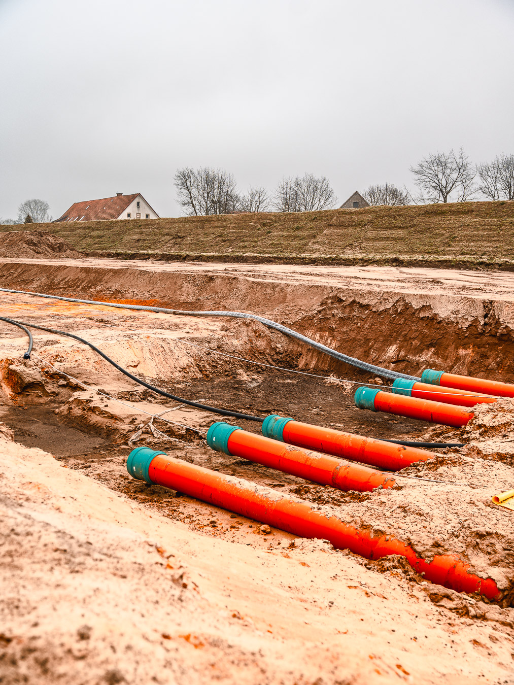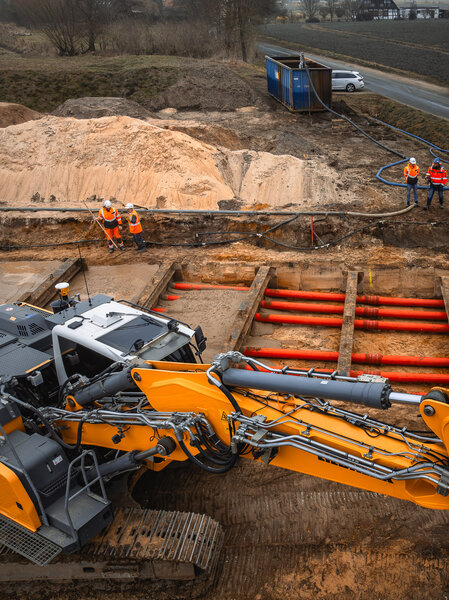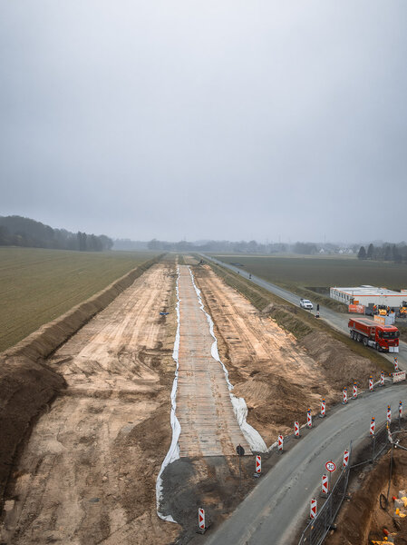 In Lüstringen, the consortium ENlag16 GA3, consisting of Eiffage Infra-Nordwest and De Romein, is carrying out the construction of a cable conduit system. The core construction time is around two years. Around 65,000 cubic metres of liquid soil will be installed on the construction site, the processing of which is heavily dependent on the weather.