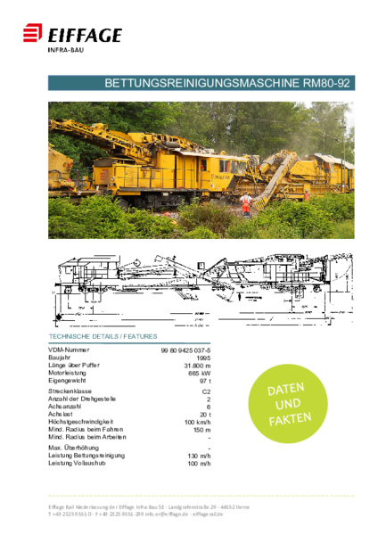 - Leistung Bettungsreinigung: bis zu 130 m/h