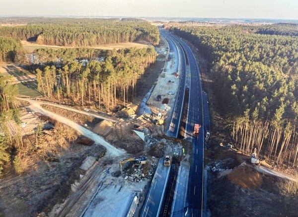 Im Bereich Straßen- und Tiefbau werden etwa 2,1 Millionen Tonnen Asphalt bewegt, bis zu 9 000 Tonnen pro Tag. Das Team der Eiffage ist hier für die Errichtung der gesamten Straßenausstattung wie Markierungen und Beschilderungen verantwortlich. Auch die Herstellung von Entwässerung sowie Natur- und Landschaftsarbeiten sowie die betriebstechnischen Einrichtungen sind Teil des Projektes.