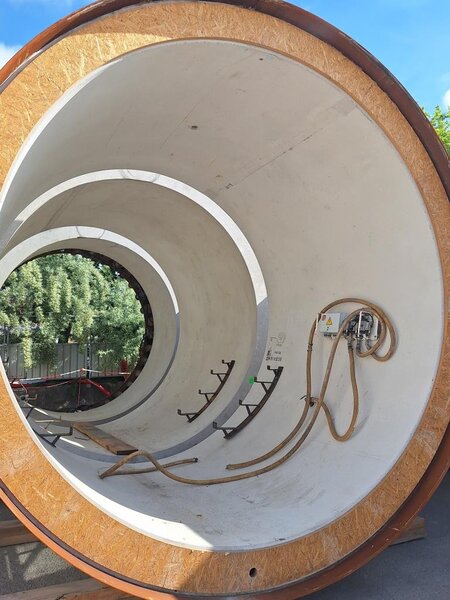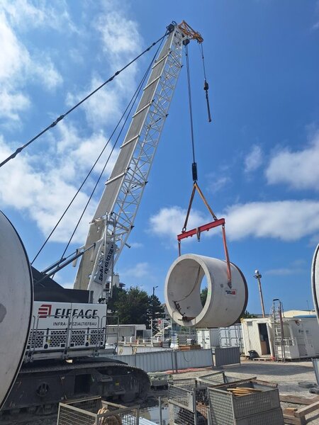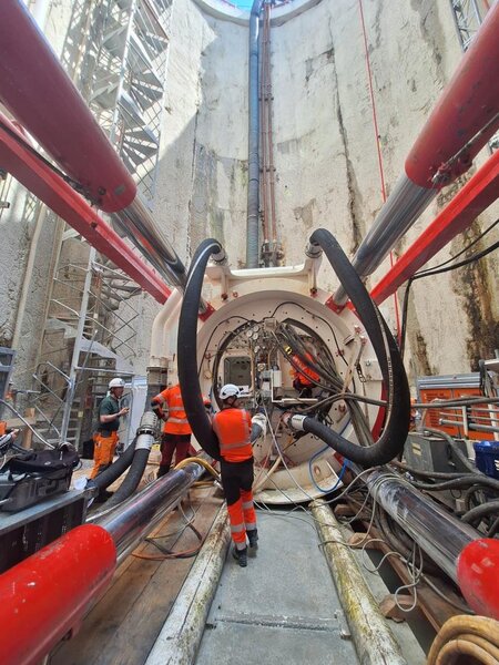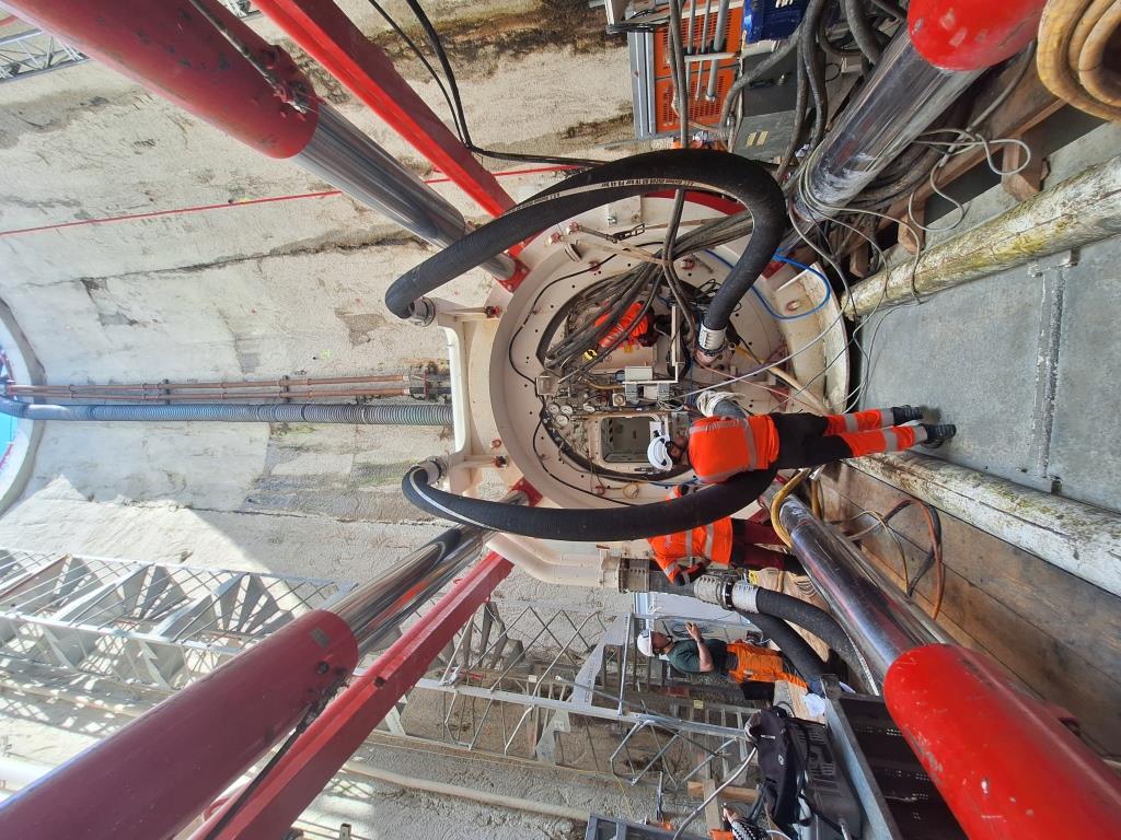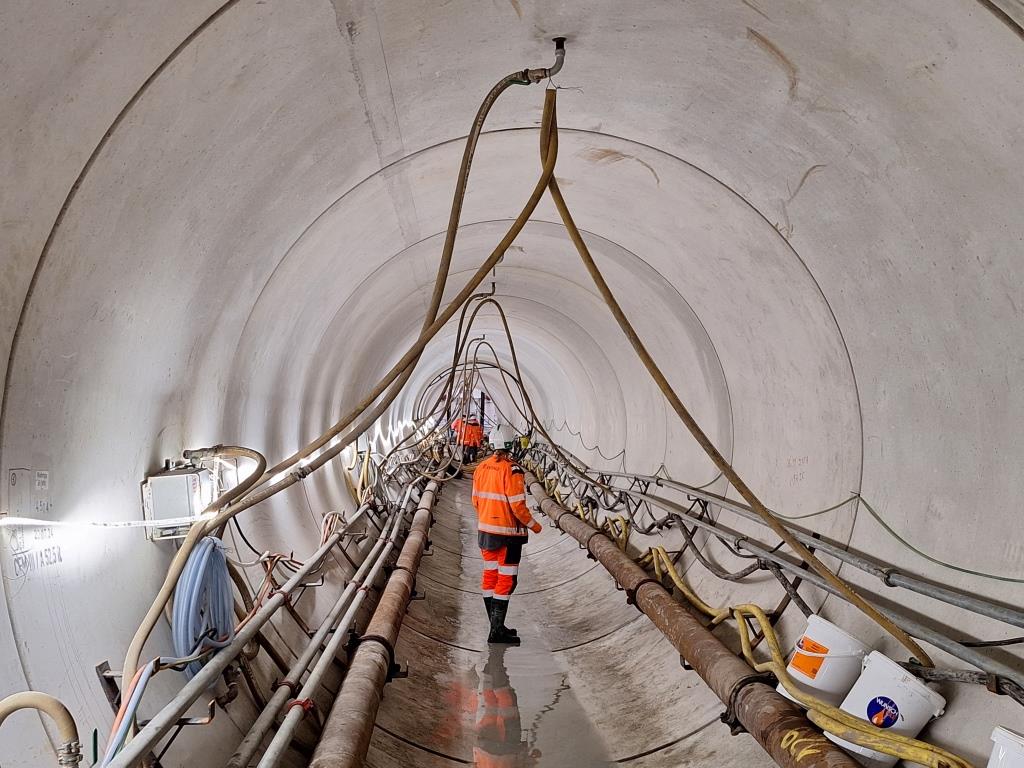 Die Produktion der benötigten Rohre wurde vollständig abgeschlossen. Der eigentliche Tunnelvortrieb wurde im Mai gestartet. Nur zwei Tage später konnte erfolgreich eine Werkzeuginspektion unter Druckluft vorgenommen werden – ein wichtiger Meilenstein für die Sicherheit und Qualität der Bauarbeiten.